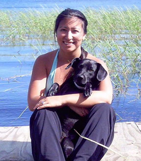 | Anita Moore (Hen, Jaybird, and Innkeeper's wife) and Harold, adopted in 2007 from the ASPCA | Ensemble member Christina Charly Burgos and her dog |