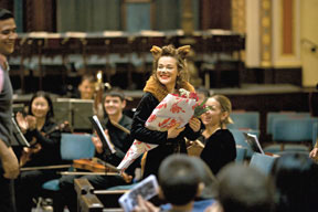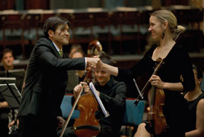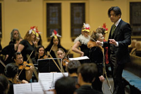 | Alissa Mori (Frog) with Katrina and Andrea Gonzales (Fox Cubs) | Sung Jin Hong acknowledges principal Second Violin Leah Potteiger. |