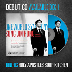 One World Symphony is pleased to present our very first music CD, featuring highlights from live performances in New York City including music by composer-conductor Sung Jin Hong (Breaking Bad — Ozymandias, Eye of the Storm, Rite of the Cicada) as well as favorites by Ravel, Stravinsky, and more. All net proceeds will benefit Holy Apostles Soup Kitchen — New York City's largest soup kitchen. When you give the gift of a One World Symphony CD this holiday season you are also helping to provide hot, nutritious meals to New Yorkers in need.