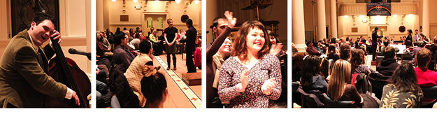 On October 26, 2014, One World Symphony kicked-off its Operasodes® season with a sold-out performance. The season opener, New Girls (October 26th and 27th), included selections from The Merry Widow, Le Nozze di Figaro, Die Fledermaus, and La Bohème. The evenings were filled with lively sing-alongs, laughing, and dialogue with the audience led by Artistic Director Sung Jin Hong. Inspired by Jimmy Fallon and The Roots from The Tonight Show, One World Symphony's principal bassist Justin Lee improvised songs on the spot with information compiled by each guest's interview. The evenings also included a surprise special performance of Schumann's Second Symphony.